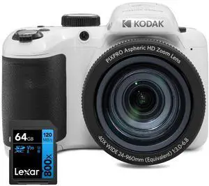 Kodak PIXPRO Astro 20MP Digital Camera 40X Optical Zoom 24mm White + 64GB Card