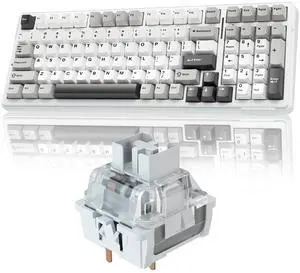 EPOMAKER x Aula F99 Wireless Mechanical Keyboard, Hot Swappable Gasket Custom Gaming Keyboard with Five-Layer Padding, Bluetooth/2.4GHz/USB-C, 8000mAh Battery (White Light Blue, Nimbus V3 Switch)