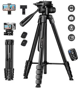 66" Phone Tripod, Tripod for iPhone with Remote & Phone Stand, Extendable Cell Phone Tripod for Video Recording, Ultimate Tripod & Monopod Accessories for iPhone/Android, Clamp Mount