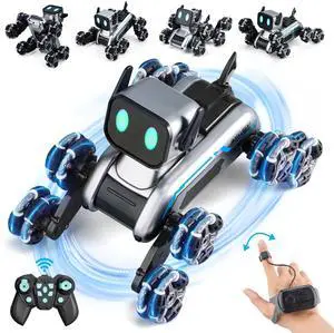 Rasout Robot Dog Toys RC Stunt Car for Kids Adults, 8WD Gesture Sensor Remote Control Cars with Light, Music, 2.4Ghz Remote Control Robot, Christmas Birthday Toy for 6 7 8 9 10 11 12 13 Boys Girls Kid