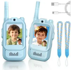 Video Walkie Talkies for Kids, 2 Pack Rechargeable Kids Walkie Talkies Long Range Radios, Video Intercom & Voice Changer, Christmas Birthday Gifts Toys for Boys Girls Age 3-12, Outdoor Hiking Travel