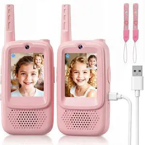 Girls walkie talkies 2 Pack 1600 ft Range Rechargeable Real-Time Video Voice Changer Walkie Talkies for Girls with Watch Straps, Perfect for Backyard Play Gifts for Boys Girls Ages 3-12 Pink