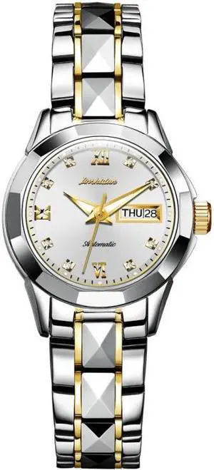 Women JIN SHI DUN 8813 Fashion Waterproof Luminous Automatic Mechanical Watch (Silver Gold White)