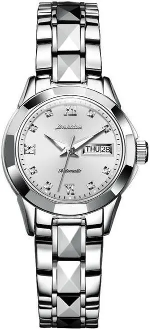 Women JIN SHI DUN 8813 Fashion Waterproof Luminous Automatic Mechanical Watch (Silver White)