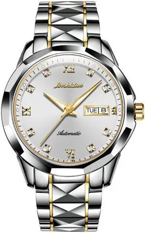Men JIN SHI DUN 8813 Fashion Waterproof Luminous Automatic Mechanical Watch (Silver Gold White)