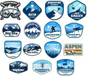 Ski Resort Sticker Pack 15 Pack, (Waterproof Vinyl Decal for Car, Water Bottle, Laptop, iPad, Window, Cooler, Luggage, Bumper, Toolbox, Locker), 3 inch
