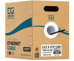 DG Cat6 Riser (CMR), 1000ft, Unshielded, 23AWG, Solid Bare Copper, Up to 10Gb Speeds, No Spline, Faster-Easier Terminations, 550MHz, ETL Listed, Indoor/Home/Commercial Use, Bulk Ethernet Cable, Black