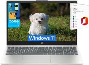 HP 15 Laptop, 15.6" FHD (1920 x 1080) Display, Intel Core i3-N305 8 Cores Processor, Intel UHD Graphics, 32GB DDR4  1 TB PCIe SSD, Wi-Fi 6 - Bluetooth 5.3, Windows 11 ,Office 2024 License