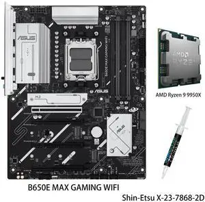 ASUS B650E MAX GAMING WIFI Motherboard & AMD Ryzen 9 9950X CPU Combo, AMD B650 ATX,DDR5, PCIe 5.0 Ready, 3x M.2 slots, Wi-Fi 6E, Realtek 2.5Gb Ethernet, DisplayPort, HDMI,USB 10Gbps Type-A & Type-C