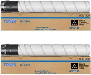 YOUTOP 2PK TN512 TN513 TN514 TN515 TN516 TN324 Black Toner Cartridge (A9E8130) Compatible for Konica Minolta bizhub C458 C558 C658 Printer