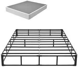 vidaXL 12 Inch Queen Metal Bed Frame with Headboard, No Box Spring Needed, Noise Free Platform Bed Frame with Steel Slats, Easy Assembly, Under Bed Storage, Minimalist, Black