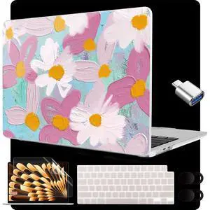 MEEgoodo for M4/M3/M2 MacBook Air 15.3 inch Case 2025 2024 2023, Case Fit Model (A3241/A3114/A2941) for MacBook Air 15 inch, Laptop Hard Shell with Keyboard Cover, Art Plants Floral