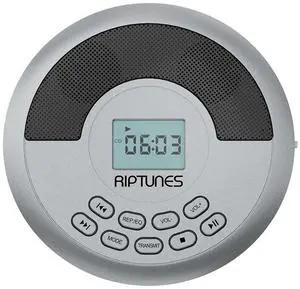 Riptunes CD Player Portable Rechargeable Battery Bulit-in - Wireless, Dual Speakers Anti-Skip Protection - Compatible MP3 USB- Silver