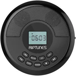 Riptunes CD Player Portable Rechargeable Battery Bulit-in - Wireless, Dual Speakers Anti-Skip Protection - Compatible MP3 USB- Black