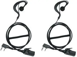 Two-Way Radios G-Shape 020PTT Earpiece Headset Kit Compatible with Baofeng UV-5R, BF-888S, Kenwood TK-3107, TK-3400 Series (2Pack) (Black 1)