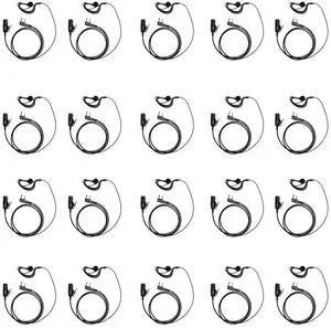 20-Pack Heavy-Duty G-Shape PTT Headset Kit Compatible with Baofeng UV-5R, BF-888S, Kenwood TK-3107, TK-3400 Series Radios