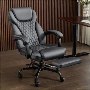 Office Chair, Big and Tall Office Chair with Foot Rest Ergonomic Chair Home Office Desk Chairs Reclining High Back Leather Chair with Lumbar Support(Gray)