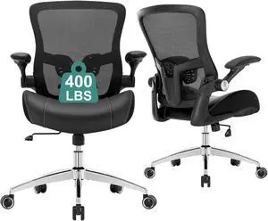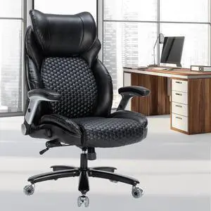 Big and Tall Office Chair for Heavy People 400lb, Executive Desk Computer Chair Adjustable Flip-up Armrests, PU Leather Swivel Task Chair with Ergonomic High Back and Lumbar Support