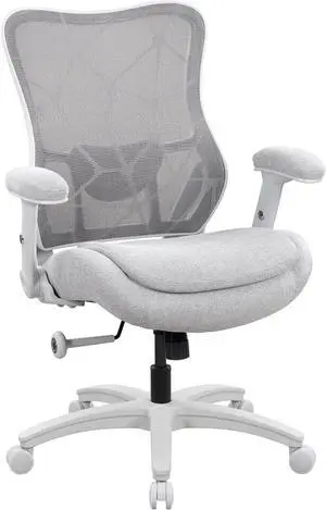 Big and Tall Office Chair 500lbs Heavy Duty Ergonomic Mesh Desk Chair with 23.6" Extra Wide Seat, 29.5" High Back, Adjustable Lumbar Support & Flip-Up Arms for Large Body Types(Light Gray)