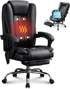 Big and Tall Office Chair, Executive Heavy Duty 500 lbs Capacity, Ergonomic Leather Desk Chair with Adjustable Headrest, Lumbar Support, and Flip-up Armrests - High Back Swivel Chair, Black