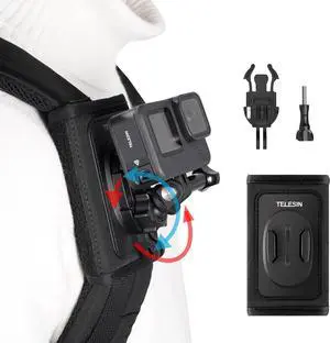 TELESIN 360 Backpack Mount Shoulder Strap Clip Holder w Quick Release Adapter Base for GoPro Max 13 12 11 10 Insta360 X5 X4 Ace Pro 2, D-J-I Osmo Nano Action 5 Pro Pocket 3 Bike Motorcycle Accessory