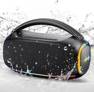 Bluetooth Speaker 80W(Peak)Loud with Bass, 20H Playtime, IPX7 Waterproof, RGB Lights, TWS, Large Portable Wireless Speakers for Outdoor, Home, Party, Pool, Beach, Tailgating, Gym, Work, Gifts (Black)- Brand: OZJ