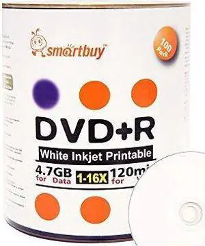 Smart Buy 100 Pack DVD+R 4.7gb 16x White Printable Inkjet Blank Media Record Disc, 100 Disc 100pk