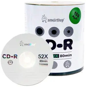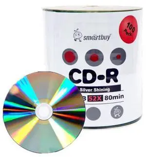Smartbuy 100-disc 700mb/80min 52x CD-R Shiny Silver Top Blank Recordable Media Disc