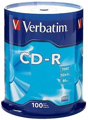 Verbatim CD-R Recordable Media, Spindle, 700MB/80 Minutes, Pack of 100
