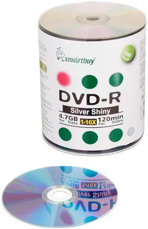 Smart Buy 100 Pack DVD-r 4.7gb 16x Shiny Silver Blank Data Video Movie Recordable Media Disc, 100 Disc 100pk