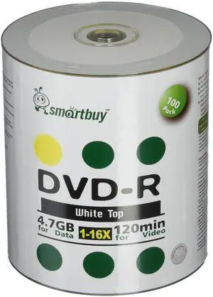 Smart Buy 100 Pack DVD-R 4.7gb 16x Logo Blank Data Video Movie Recordable Disc, 100 Disc 100pk