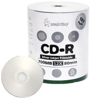 Smartbuy 100-disc 700mb/80min 52x CD-R Silver Inkjet Hub Printable Blank Recordable Media Disc