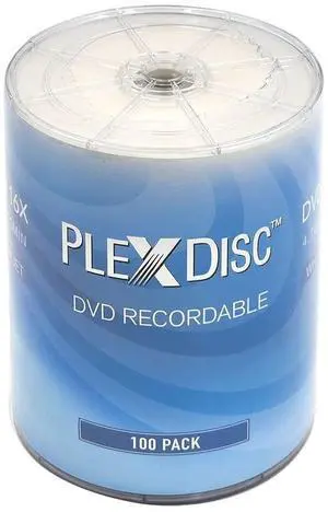 PlexDisc DVD-R 4.7GB 16X White Inkjet Hub Printable ^^ 100 Pack Shrink Wrap (No Container) ^^ Blank DVDs for Burning Video ^^ Writable Media Discs