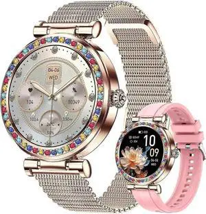 JVFYI Women's Waterproof Smart Watch with Heart Rate Monitor, 5ATM Fitness Tracker & Customizable Watch Faces