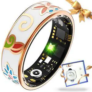Diamond Smart Ring for Women, Fitness & Vital Signs Monitoring, Sleep Tracker, Remote Photography, No Subscription, Ladies Gift, iOS & Android(Silver,7#)