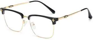 Cyxus Men Blue Light Blocking Glasses Half Rimless Computer Gaming Glasses Square Fashion Glasses 8252 Black Gold