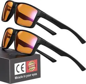 FIONOFY 100% Blue Light Blocking Amber Glasses for Sleep - Nighttime EyeWear, Computer Gaming Glasses for Men Women, Special Orange Tinted Glasses Help You Sleep and Relax Your Eyes, Black