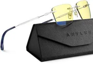 ANYLUV Rimless Blue Light Glasses Men, Rectangle Lightweight Blue Light Blocking Glasses, Stylish Metal Temple Anti Eyestrain