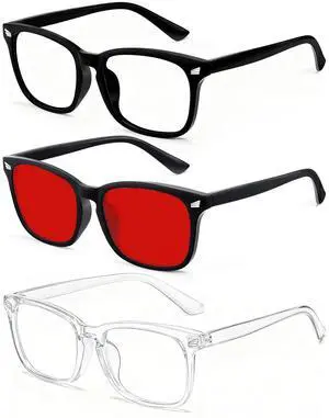 WINTOO Red Lens Glasses Blue Light Glasses Men Women - 99.9% Blue Green Blocking for Computer, Gaming, TV, Phone Screens