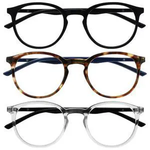OPULIZE MET Blue Light Blocking Reading Glasses for Women Men, Slim Round Frame with Scratch Resistant and Spring Hinges, Computer Glasses with Anti-Reflective, Black,Brown,Clear +2.5 (Pack of 3)