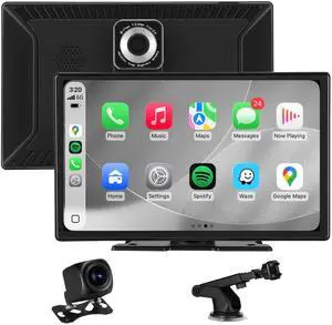 IK5 9" Wireless Apple CarPlay & Android Auto Screen, Portable Car Stereo with 4K Dash Cam & 1080p Backup Camera, Add CarPlay to Any Vehicle, Touchscreen, Mirror Link
