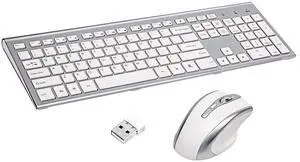 Wireless Keyboard and Mouse Combo - Full Size Slim Thin Wireless Keyboard Mouse with Numeric Keypad 2.4G Stable Connection Adjustable DPI (White & Silver)
