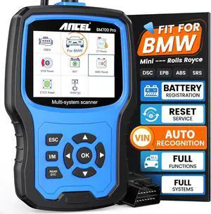 BM500 Battery Registration Tool Fits for BMW Mini - All Systems OBD2 Scanner with Engine, ABS, SRS, ESP, SAS System Diagnosis, Car Code Reader for CBS, EPB, ETC, BMS, PCM, Oil Reset- Type: Car Charger