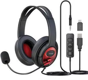 Wired Headphones with Microphone for PC, On-Ear Computer Laptop USB Headset with Noise Cancelling Microphone in-line Control for Home Office Online Class Skype Zoom, (3.5mm + USB)