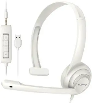 HW02 USB Headset with Microphone Noise Cancelling & in-line Control, Super Light, Ultra Comfort On-Ear Wired Office Call Center Headset for Boom Skype Webinars (White)