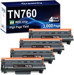 Dyak TN760 Toner Cartridge 4-Pack, High Yield Black, Compatible with Brother HL-L2325DW, HL-L2350DW, HL-L2370DW, HL-L2390DW, HL-L2395DW, MFC-L2710DW, MFC-L2750DW Printers (3,000 Pages Each)