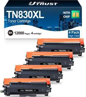 TN830XL Toner Cartridge(with Chip) 4 Pack Black Compatible with Brother TN830XL Toner Cartridge, Working with HL-L2460DW MFC-L2820DW MFC-L2820DWXL HL-L2400D HL-L2405W DCP-L2640DW HL-L2480DW Printer