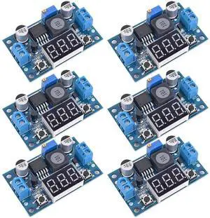 LM2596 Adjustable DC-DC Step-Down Buck Converter Module with LED Voltmeter Display, Voltage Regulator 4.0-40V Input to 1.25-37V Output Power Supply Module (Pack of 6)