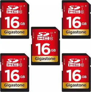 GIGASTONE 16GB SDHC Memory Card, 5 Pack Premium Series, Transfer Speed Up to 80MB/s for Photos, Videos, Music, Files, Camcorder, Camera, PC, Class 10 U1 UHS-I, with 5 mini cases- Card type: Full Size SD