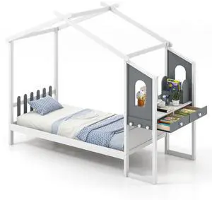 SlickBlue Twin House Bed with Tent and 2 Storage Drawers for Kids-White